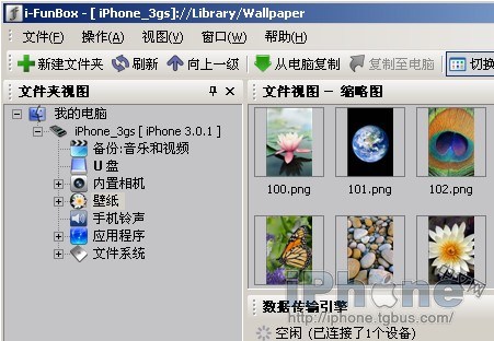 本教程只針對一個軟件iFunBox中文版,這個軟件的好處是單獨列出了iPhone壁紙和鈴聲的目錄,很方便我們使用。