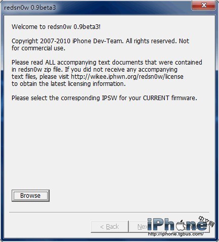 2.打開Redsn0w,並且選擇下載下來的3.0或3.1.2官方固件。如果沒有下載,請參考《iPhone固件專題匯總》。