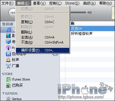 第二步 進入iTunes上面的“編輯”內找到“偏好設置”。