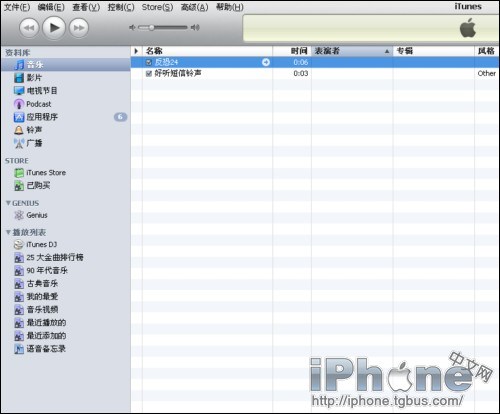 我們把要做成鈴聲的音樂文件拖到iTunes的“音樂”裡面。