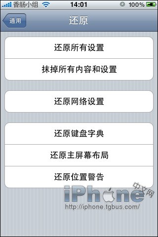 - 打開iPhone的Settings(設置) –> General(通用) –> Reset(還原) –> Reset Network Settings(還原網絡設置)來重置網絡設置(即先做一次方法一)。