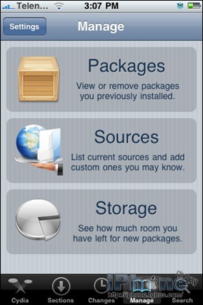- 然後啟動“Cydia” ,點擊“Manage” 然後再點擊 “Sources”。
