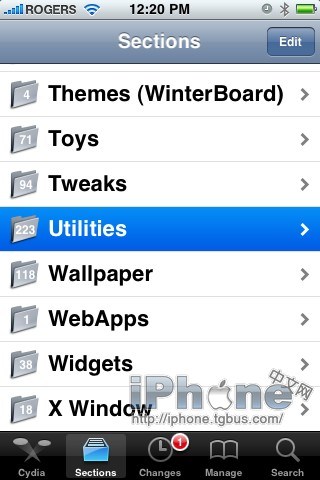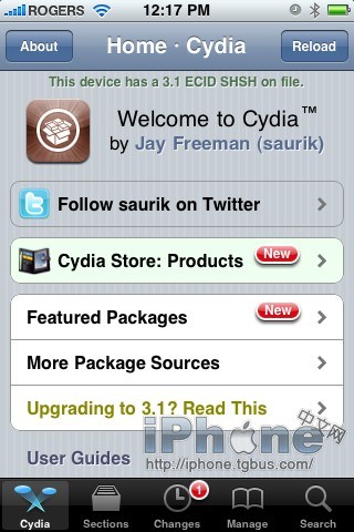 進入Cydia軟件,一般越獄過的iPhone都有這個軟件,以下內容需要wifi連接。
