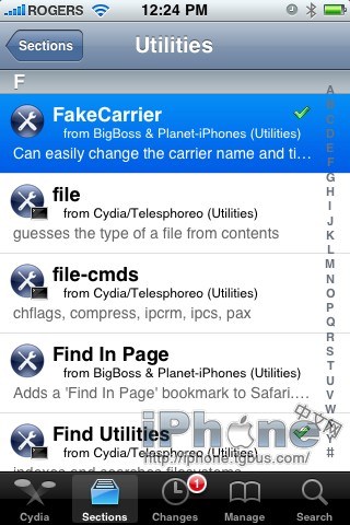 在Sections裡面找到Utilities欄目,在其中找到FakeCarrier,選中