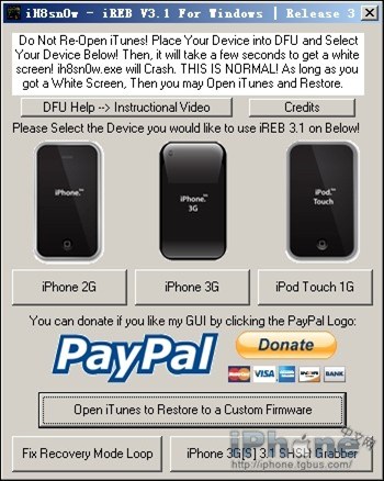 iREB的首要作用是校正iPhone與iTunes的16xx(如1604)和21通信錯誤,執行起來非常簡單,先連接iPhone到電腦,然後運行 iH8snow - iREB,如果此時iTunes已經打開也可以直接使用——無須關閉!