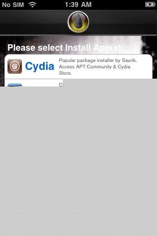 進入後看到以下界面,選擇你要安裝的軟件,裡面集成了cydia、rock和icy,裝哪個自己決定,普遍都安裝Cydia。