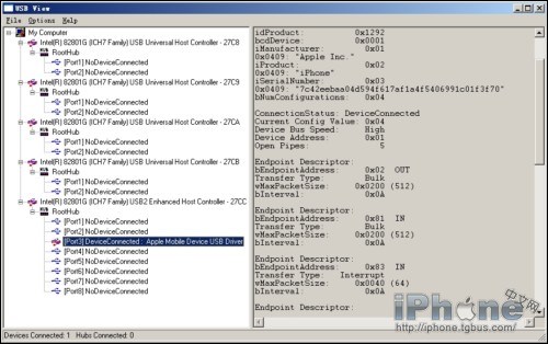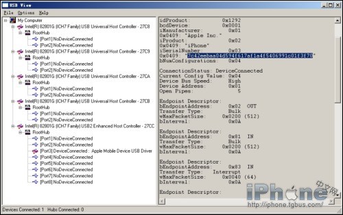 iREB的首要作用是校正iPhone與iTunes的16xx和21通信錯誤的,但是用iREB可以抒3.1的ECID保存到本地電腦,原理與Cydia將文件備份到Saurik的服務器相同,此文件非常重要,在固件升級是尤為明顯。但是降級到3.1要得到ECID號(16數字和字母組成),可以用USB View看到。使用USB View前,將iPhone置於恢復模式(DFU)!