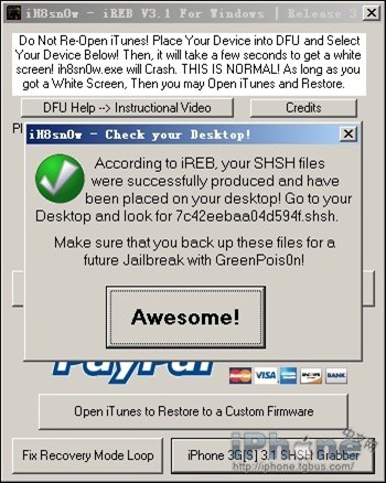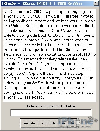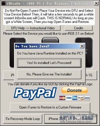 6、復制下你的ECID後確保電腦上安裝有Java運行環境,可在上面鏈接中下載安裝。安裝後打開iREB,點擊右下角的iphone3G(S) 3.1 SHSH Grabbaer。