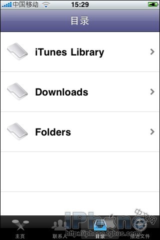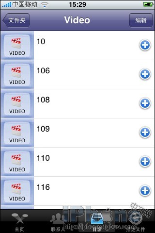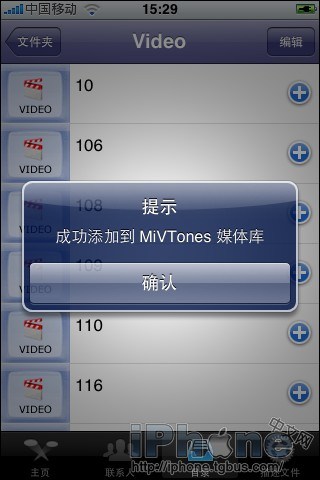3.打開MiVTones,點擊最下方的第三個標簽“目錄”進入,然後點擊Folders,在進入的下一頂菜單中點擊MiVTones Video進入後就可以發現你上傳的文件了。