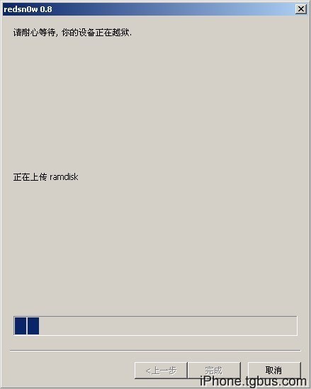 RedSn0w開始上傳RAM Disk和kernel文件。