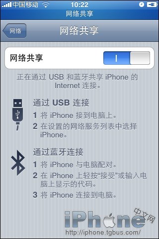該功能僅適用於 iPhone 3G 和 iPhone 3G S ,將 iPhone 作為一個調制解調器把 3G 網絡連接共享給筆記本上網。(部分國家和地區運營商可能尚不支持該功能。)