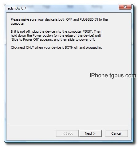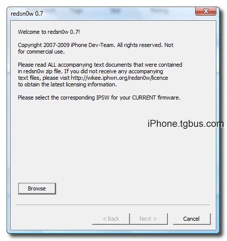恢復完畢後,我們可以運行redsn0w,如果之前恢復過固件,可以直接開始運行redsn0w