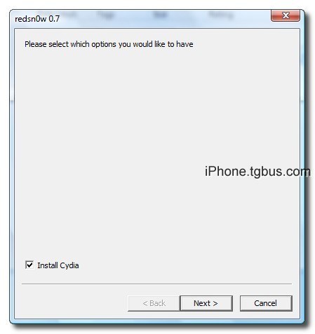 按照下面選擇install cydia(安裝cydia),繼續Next