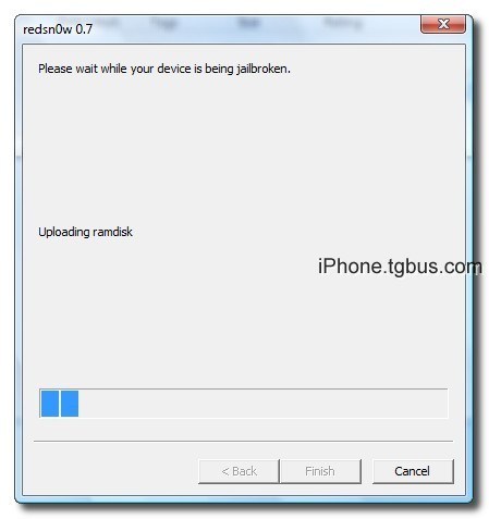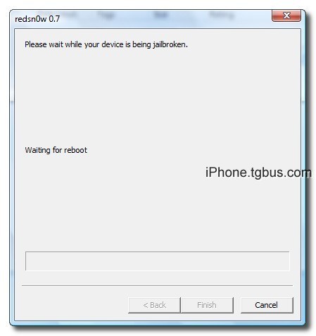 一旦紅雪redsn0w界面顯示Done!表示文件上傳完畢,點finish完成。等iPod Touch再次重新啟動之後,最後完成就表示越獄完畢,可以使用了。