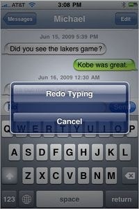 如果原來已經有寫好的文字,你在原來的基礎上又輸入了新的文字,此時你晃動iPhone ,進行的是重做(redo),即把文字恢復到你新開始寫的狀態,原來的文字會保留。