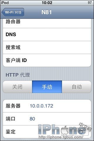 07、在HTTP代理下設置,手動,服務器:10.0.0.172。端口:80.