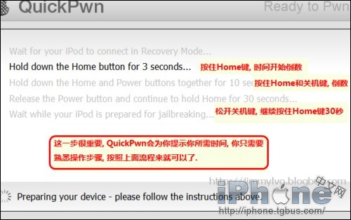 2.完成之後從上面下載的QuickPwn任意一個版本。然後打開按照圖示進行即可。