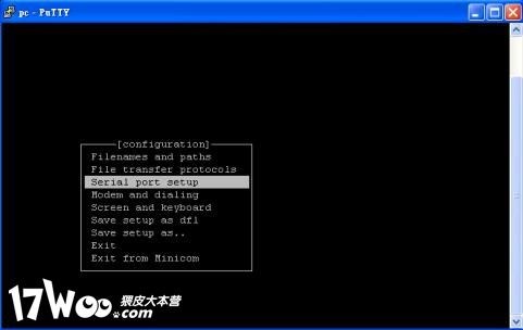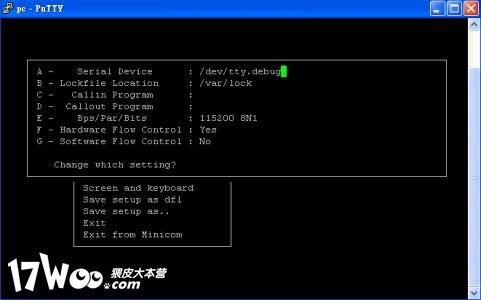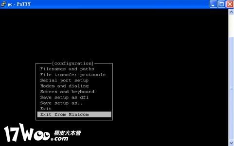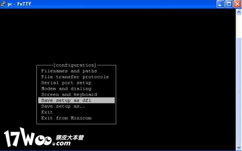 3. 按下ESC,選擇"Save setup as dfl.",然後選擇"exit"離開minicom.