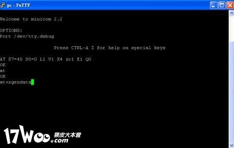 4. 執行"minicom -w",執行"at".