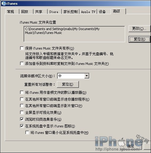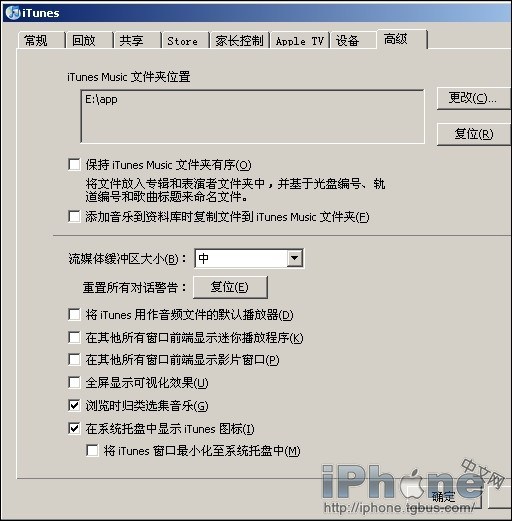 打開iTunes,進入“偏好設置”,來到“高級”設置。