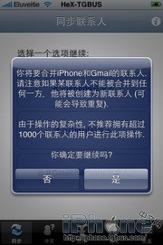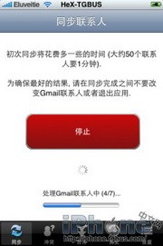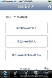 3.然後在圖3的界面中選擇你需要的操作,這裡小編選擇了“合並Gmail和iPhone聯系人”,接著圖4會彈出一個提示,點擊“是”就開始同步了(圖5),中途可以選擇停止。