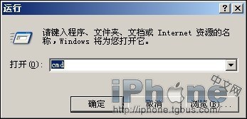 3、正確進入DFU恢復模式後,你需要打開命令行窗口,在“開始”中打開“運行”輸入CMD,確定。