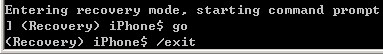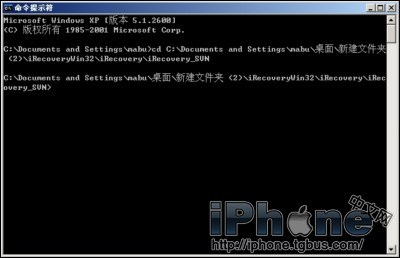 7、最後:當你再次進入DFU模式,iPod Touch屏幕無顯示,iTunes提示識別出恢復模式的設備後。我們繼續最後的步驟,打開命令行輸入窗口,在提示符界面,再次從命令行窗口進入iRecovery_SVN文件夾。