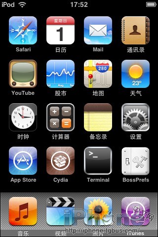 完成這最後一個命令後,你的iPod Touch 將自動重新啟動,啟動好你就可以看見cydia已經安裝完畢了。破解成功,哈哈。