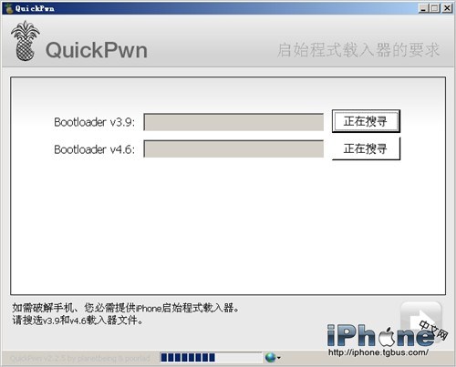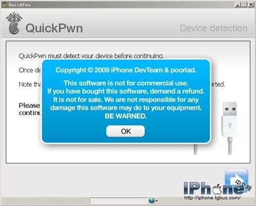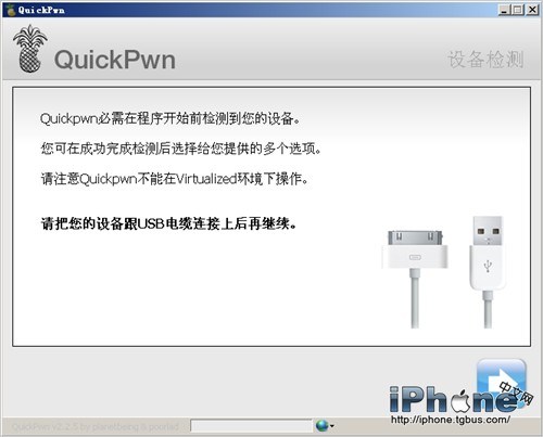 1.啟動軟件後不再需要你要破解的設備,連接USB後QuickPwn會自動識別。