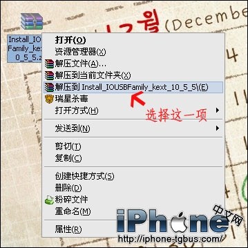 注意:一定要把下載的壓縮包“Install_IOUSBFamily_kext_10_5_5”解壓到桌面,這非常重要。