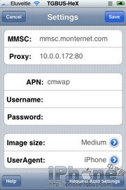 8.如果以上設置不起作用或者右上角的小M沒有亮起綠色的話,檢查手機的設置-通用-網絡-中的“數據漫游”是否打開,然後進入“蜂窩數據網”中將APN填入cmwap,其余留空,重啟機器再試。
