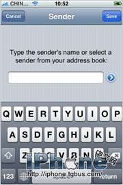這個選項裡,你可以設置發送者。可以直接輸入電話號碼,也可以從電話本裡選擇,輸入完畢別忘記點Save鍵。
