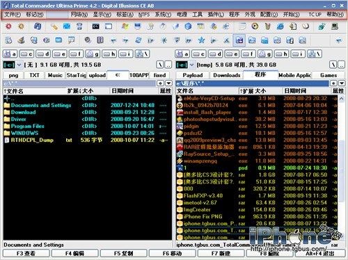在眾多的iPhone與PC互通軟件裡,Total Commander以其最快的傳輸速度和最強大的管理功能而力壓群雄。在iPhoner的手中,Total Commander的確是一款可以在iPhone上呼風喚雨的軟件。下面我們就來Total Commander的加強版——Total Commander Ultima Prime 4.2——為例詳細的介紹一下它的使用方法和擴展應用。