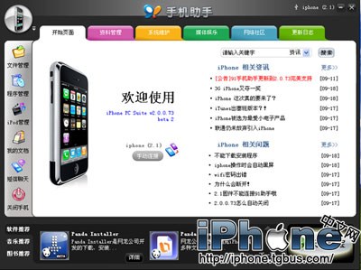 在經過不斷的努力與創新後,網龍公司終於推出iPhone PC Suite的更新版,最新版的iPhone PC Suite正式定名為“91手機助手”。按照用戶使用習慣及界面排版,我們將91手機助手的功能歸類為六部分,分別為:快捷菜單、資料管理、媒體娛樂、網絡社區、更新日志。