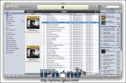 第十步:請注意:如果您從您的iTunes音樂庫裡選擇一首歌曲,Genius工具條將出現最新熱門專輯,您所沒有的熱門歌曲及一些建議。