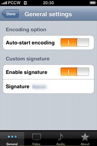 2、General -可以設定完成拍片後是否要自動Encode,也可以在這裡設定為影片加入Signature