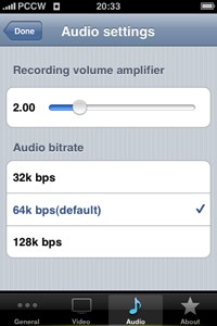 4、Audio -可設定錄影時聲音大小以及輸出品質