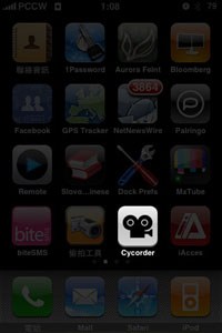 1、以Cydia搜尋並安裝Cycorder (Cydia使用方法,詳見文章:iPhone上的三大軟件管理程式) 2、點擊桌面中的Cycorder