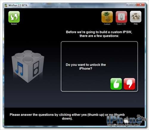 之後WinPwn會詢問你是否需要解鎖,此教程針對一代iPhone,所以我們點擊綠色拇指向上的圖標,意為“是”(圖6)。