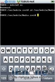 1.首先我們用WinSCP或者其它軟件將Deb包拷貝到iPhone的任意目錄中,下面小編以EndlessWalls.deb來舉個例子:先將其復制到var/mobile/Media文件夾下,然後我們打開Terminal,因為需要Root權限來安裝,所以我們先輸入su(圖1),然後輸入密碼alpine取得root權限。