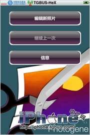 1.首先啟動軟件進入圖1的菜單界面,編輯新照片就不說了,繼續上一次操作是指如果退出軟件後再打開的話可以重新載入上一次退出時的狀態,而且在之前撤銷和重做都還保留著,即使重啟Spring Board或者重啟機器後也可以,應該是有歷史記錄保存在機器上。