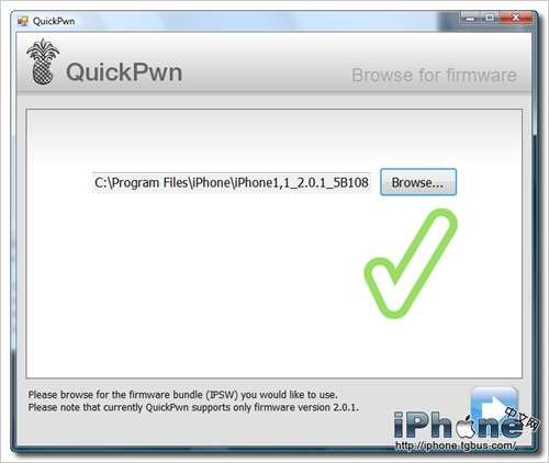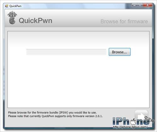 4.在圖3的畫面中點擊“Browse”選擇你電腦中的iPhone2.0.1版固件,如果沒有的話可以從上面提供的鏈接中下載。
