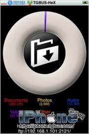 1.首先我們打開DataCase(圖1),主界面中可以看到iPhone的儲存情況,白色的大員圈實際上是一個餅狀圖,和下面的文字顯示相對應,顯示出不同文件類型在儲存中所占的比例。最下面的HTTP和FTP地址是連接時要用的,後面會講到。我們點擊中間的文件夾進入圖2所示的畫面。