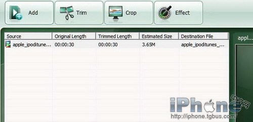 2.安裝後打開軟件,點擊圖1中左上角的“Add”添加一個你想要作為來電視頻的文件,iPhone Video Converter支持的格式很多,基本上都能夠成功轉換。