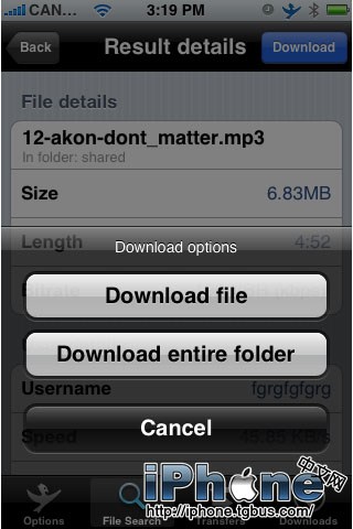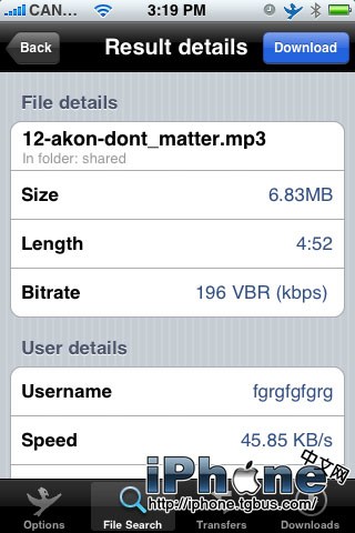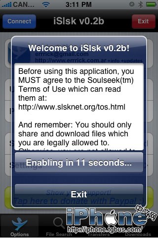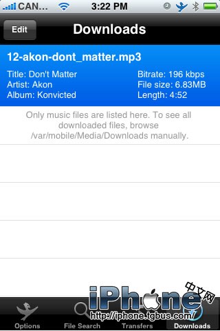 一款SoulSeek P2P下載工具,支持關鍵字搜索功能,很方便,下載也比較穩定,比之前的Torrentula強很多,遺憾的是在用中文做關鍵字搜索時會導致軟件崩潰,所以暫時只能下載國外資源了,下載的文件在var/root/Media/Downloads目錄下。