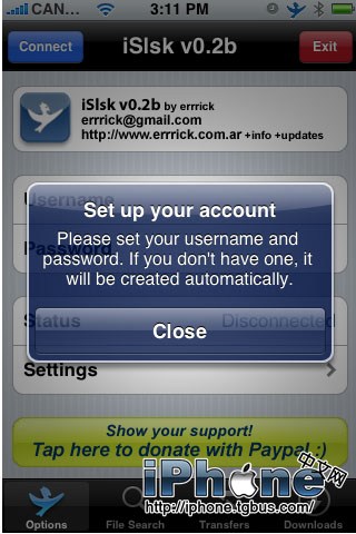 第三步:如果你沒有一個soulseek密碼是好的, islsk將自動注冊用戶名和密碼,您所輸入的。輸入用戶名和密碼然後按下連接按鈕,在左上角。