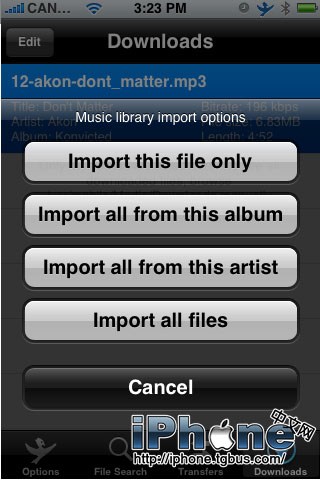 第十步:一個菜單會出現給你幾個選項進口。您可以導入此文件,這個藝術家,這個專輯,或所有檔案到您擁有的音樂庫。點擊Import this file only