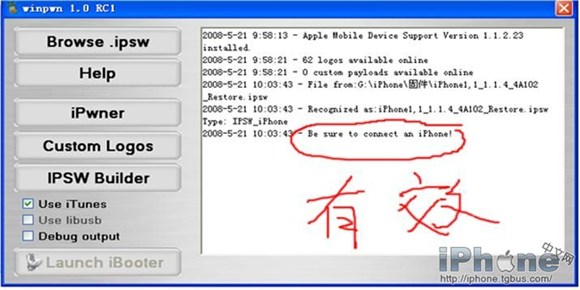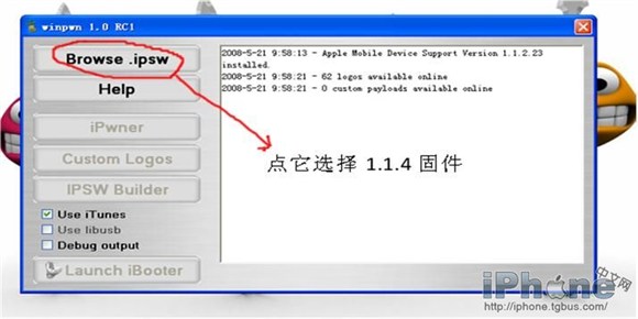 3.這時關掉你的iTunes,iPhone要連著電腦,打開winpwn點Browse.ipsw