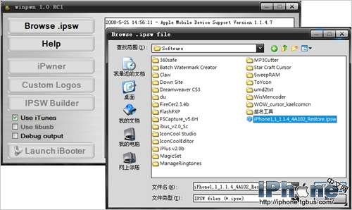 2.點擊Browser.ipsw,選擇你電腦中iPhone固件(圖1)。