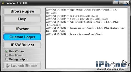 不過僅僅是因為這個原因而去折騰自制固件,確實是有點不便與不值,現在好了,Winpwn 1.0出來了,其中最大的一項更新就是玩家無須再自制固件及用iTunes恢復就可以直接更改開機及恢復畫面。